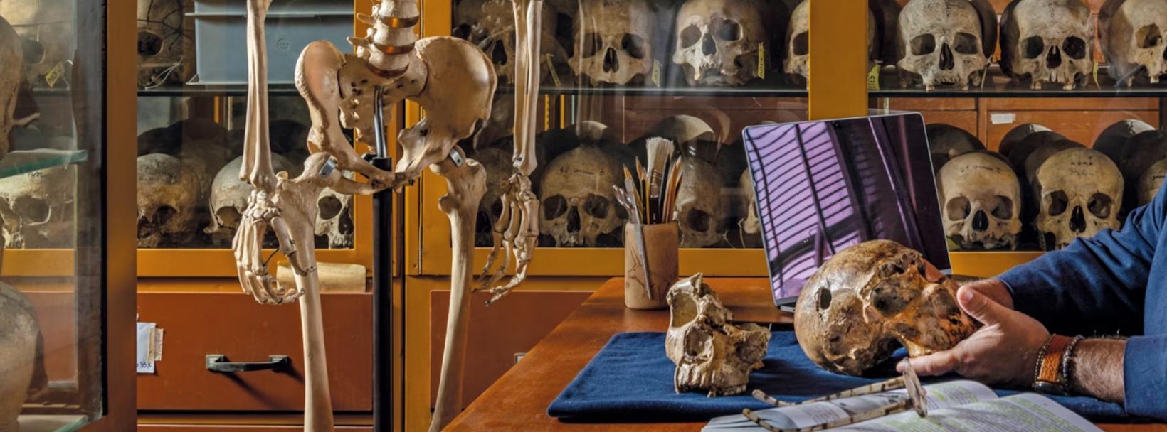 Laboratorio Museo di Antropologia - Postazione per analisi osteologiche con scheletro di riferimento (calco)